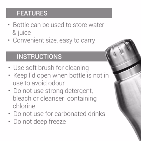 Model Name : Elate 750 Stainless Steel Water Bottle Silver -