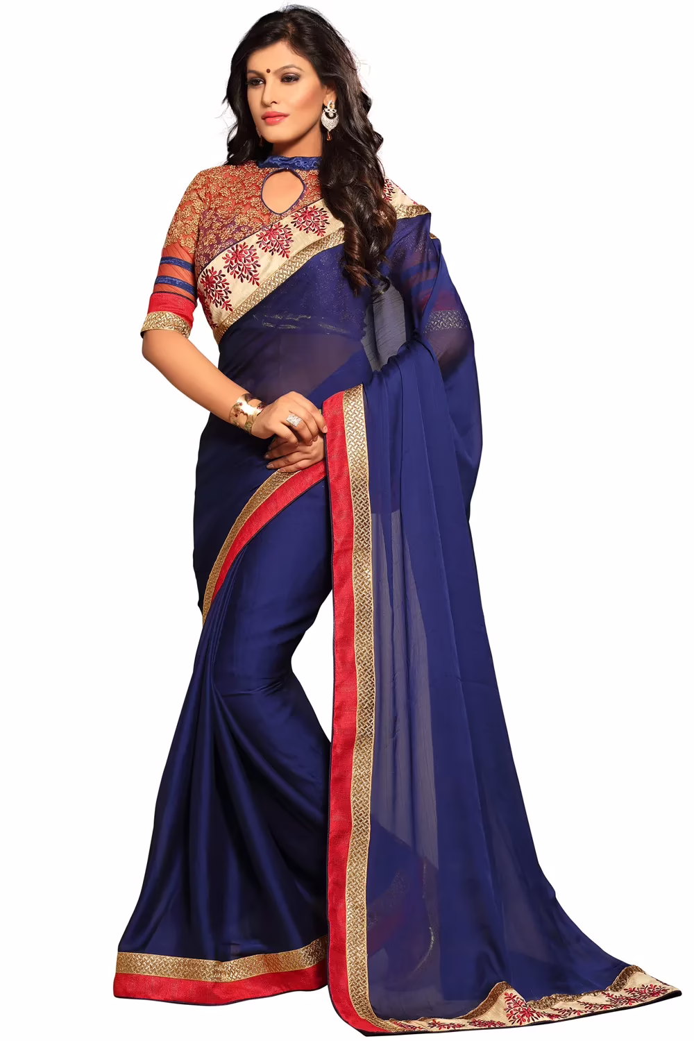 Saree Features:Navy & Blue Colour Satin Chiffon Occation Wear Traditional Saree With Matching Blouse Piece. KNOW YOUR PRODUCTS: Products Quality – We sell only Brand New High Quality Fersh Fashion Products.