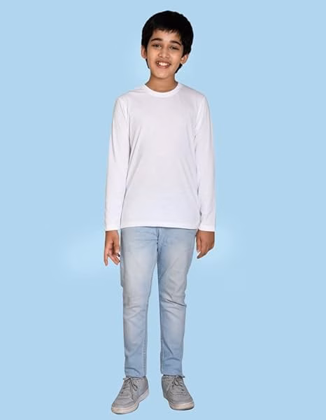 Functional design and breathable fabric across for Boys, Girls and Infants, personifying style, quality and comfort. The Full sleeve design offers versatility, making it suitable for both warm and cooler days. With its regular fit, it provides a relaxed yet stylish look for any occasion.Easy to care for, this t-shirt is easily machine washable. Its plain design adds a touch of simplicity and allows for effortless pairing with various bottoms and outerwear.
