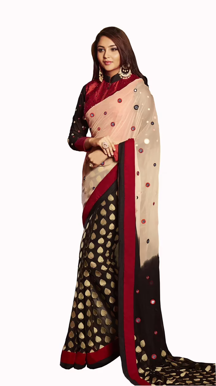 Material: Saree : Georgette ; Blouse : Dhupion & Chiffon