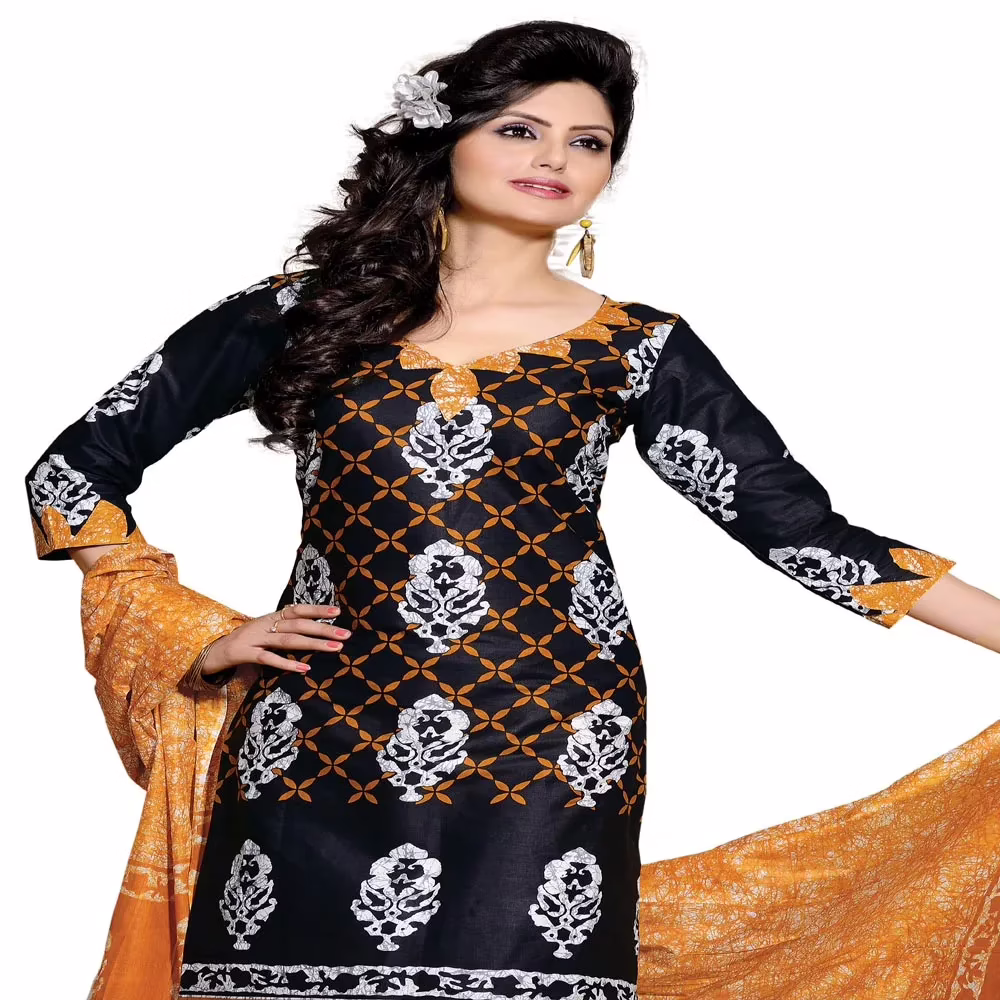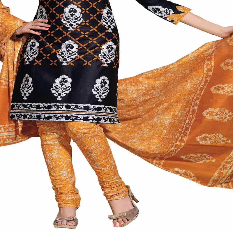 Cotton Bazaar Black & Orange Pure Cotton Un-Stitched Salwar Suit for All AgeGroup Ladies,Girls,Women at Seasonsway.com.Get ready to fetch a second glance by wearing this amazing salwar suit that comes with most appealing cotton material on its top, bottom & dupatta. The suit is sure to give pleasing feel as you wear it for any casual move. One should grab this attire to fulfill their fashion desire.This fabric keeps you fresh and comfortable all day. Get Comfort,Easy and Perfect clothing,apparel,dresses this season for Stylish Working and Practical Women,ladies,girls at our online women shopping website,store.