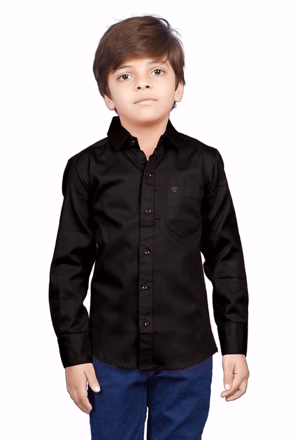 Cotton Fullsleeve Casual Plain Black Shirt for Kid’s.