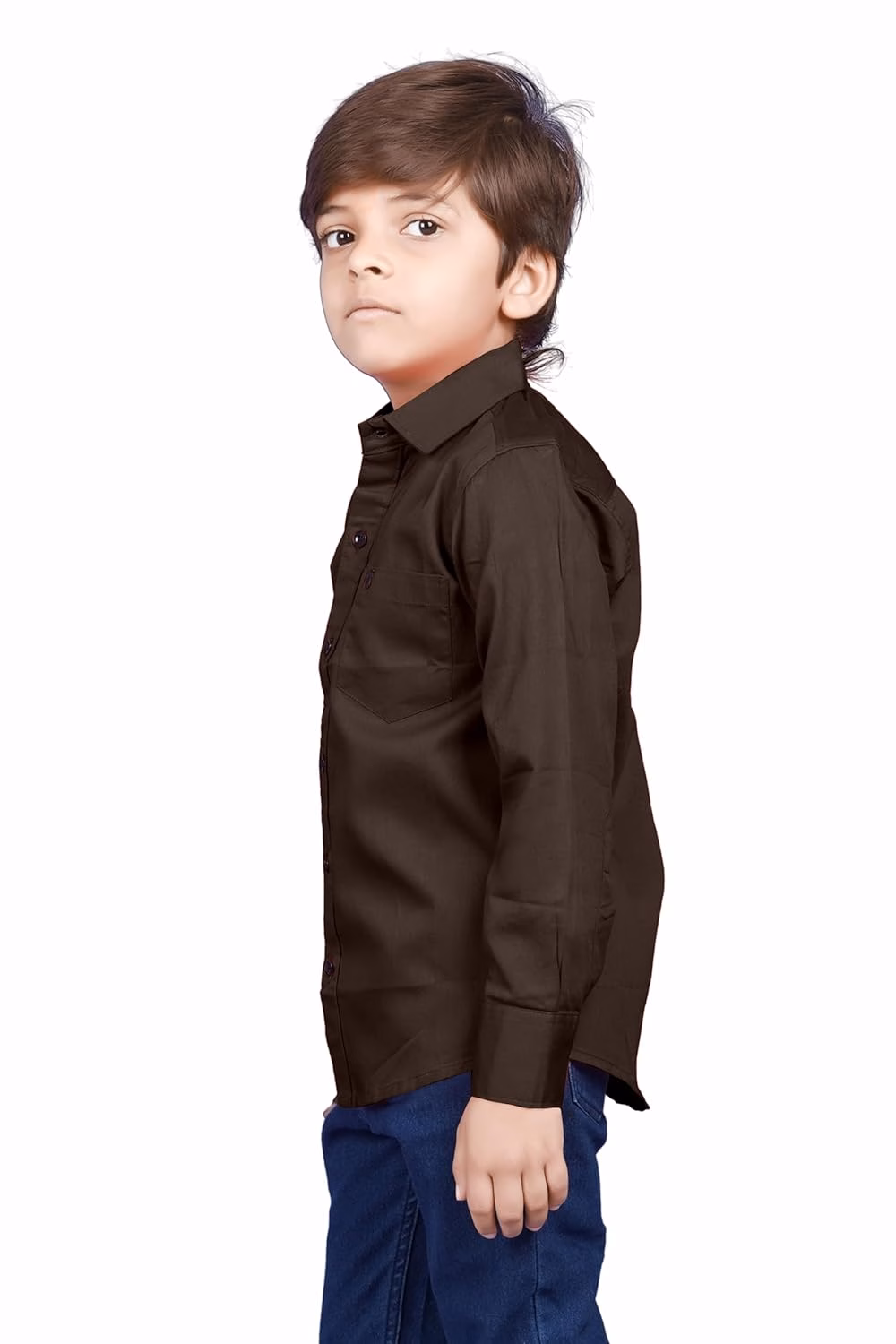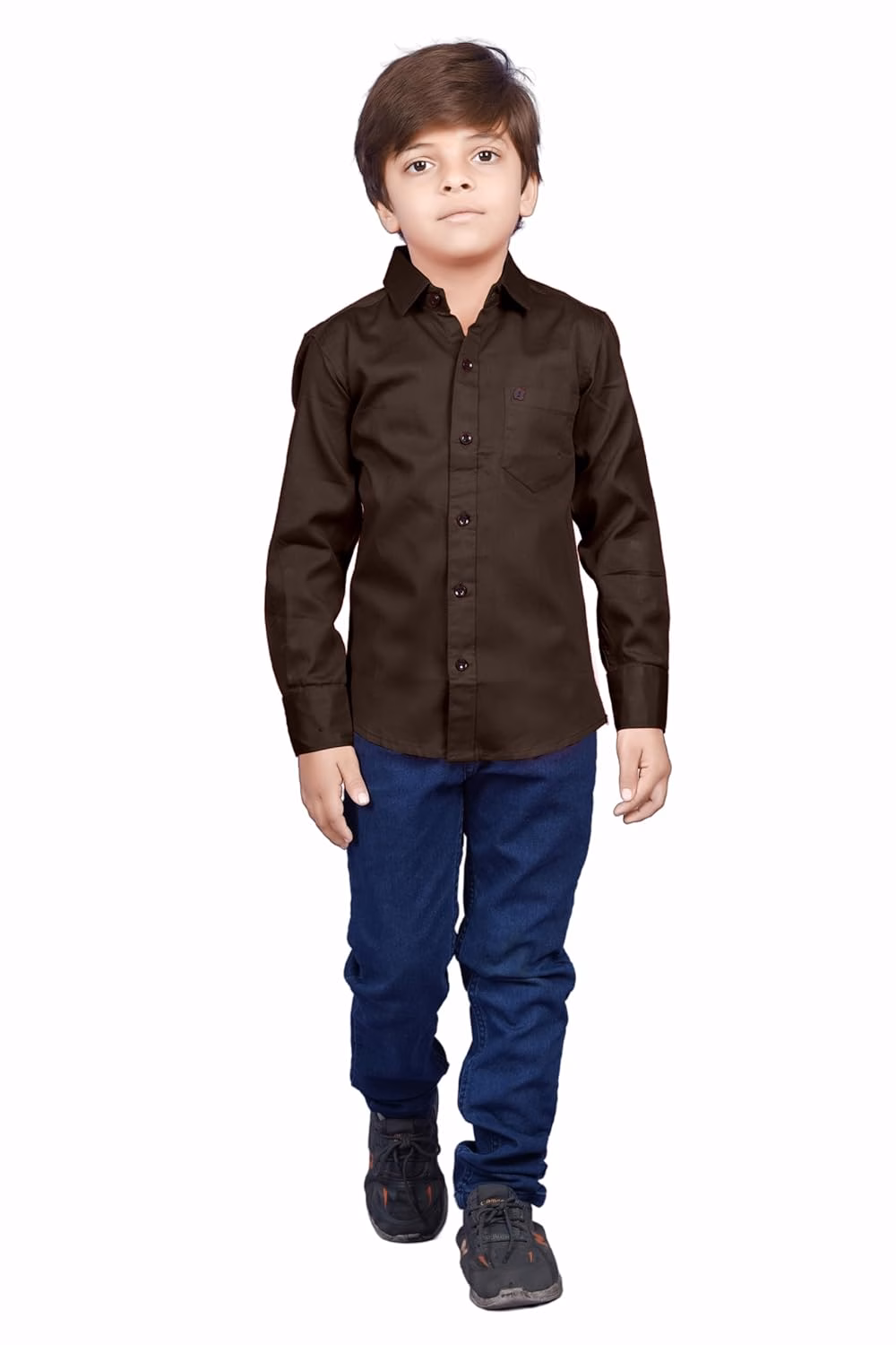 Cotton Fullsleeve Casual Plain Brown Shirt for Kid’s.