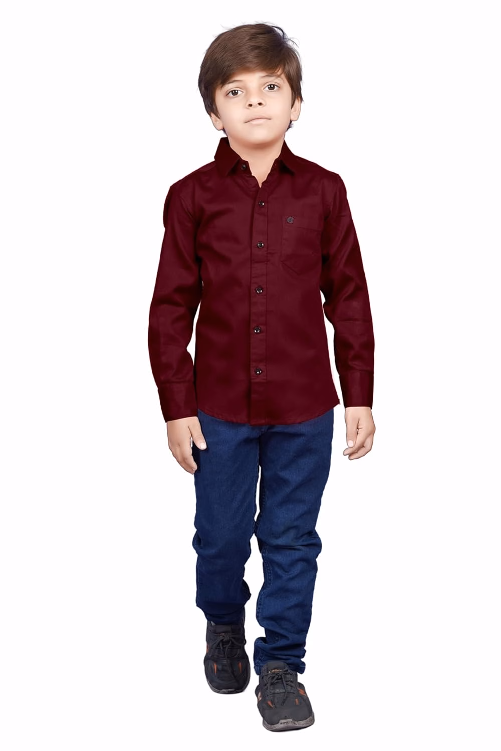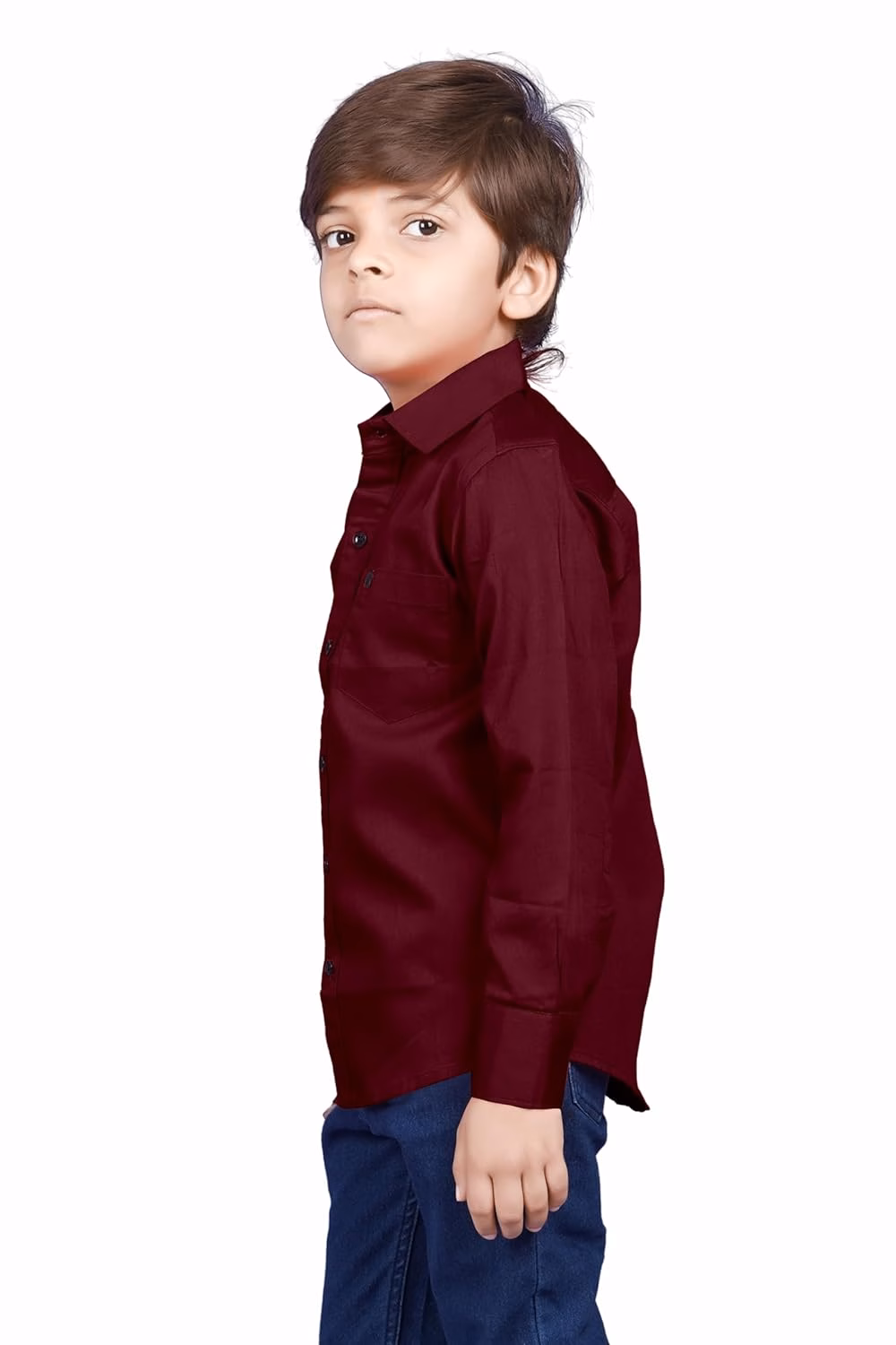 Cotton Fullsleeve Casual Plain Maroon Shirt for Kid's