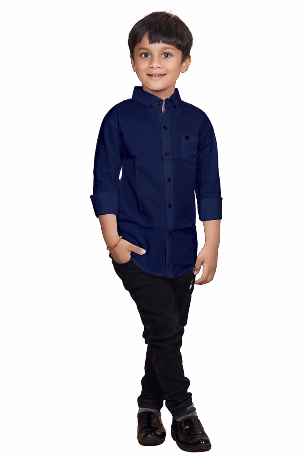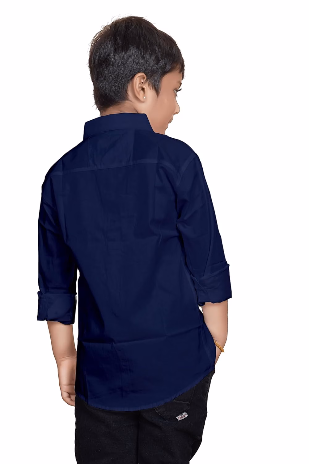 Cotton Navy Blue Shirt for Kids Spread Collor.