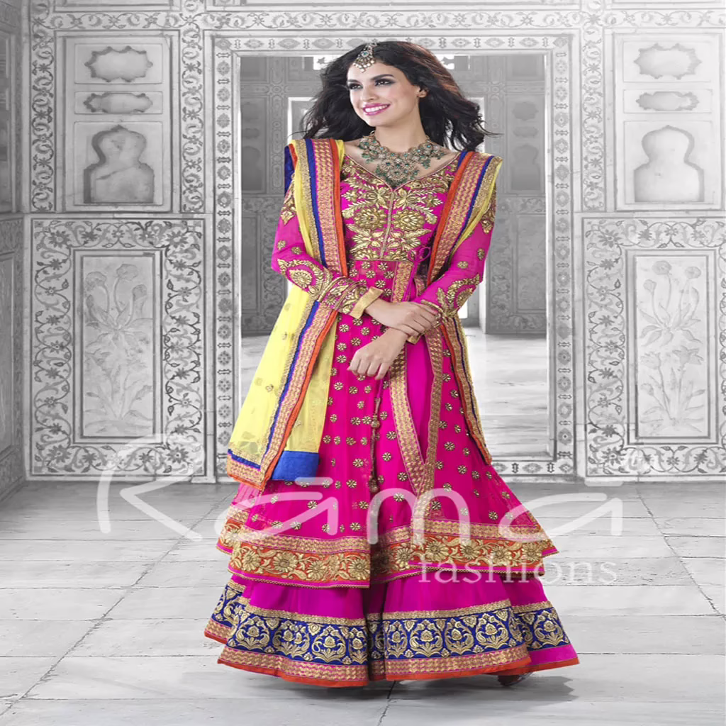 Suit Features – F3 Fashion dark pink with brown shaded anarkali suit intricate with resharm thread ,neck work & patch patti border.This unstitched festival wear anarkali suit can be stitched upto burst size 44 Inches.Available with chiffon dupatta.There might be some color variation..