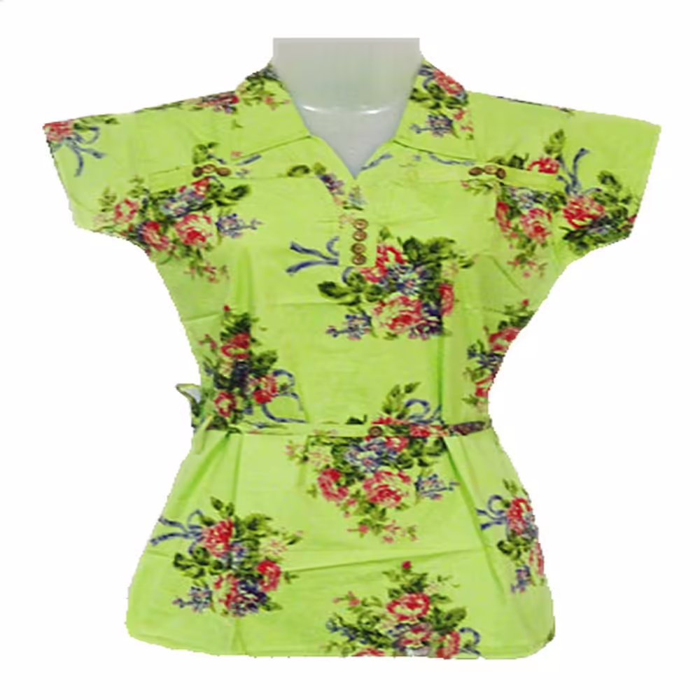 FlowerTop Features V-Collar neckline,beautifully scattered flower print,cut sleeves,buttoned front,details at waist and pure 100% Cotton fabric providing softness to you.