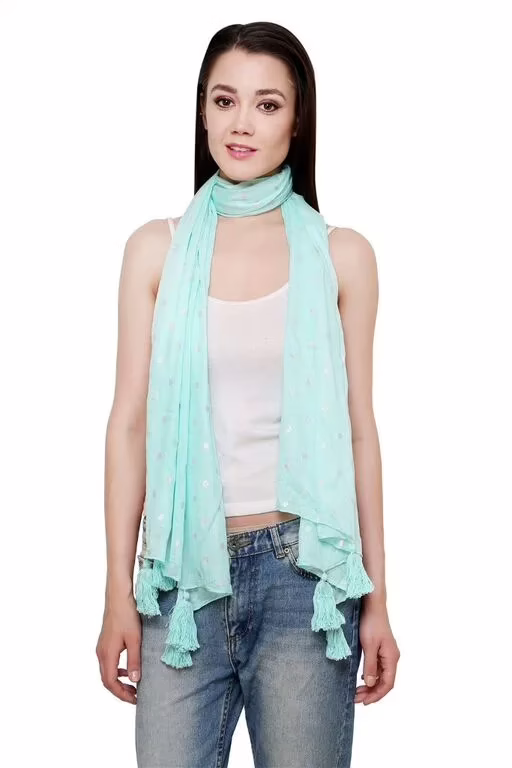 Green & Silver Polka Dot Stole With Tassel’s For Women or All Age Group Ladies,Girls & Women from Seasonsway.com ,offering Comfort,Easy and Perfect Scarf-Stole.