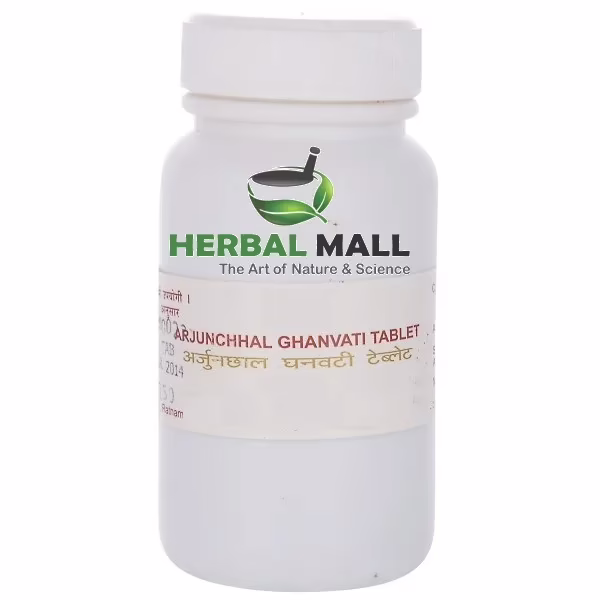 Herbal Mall Arjun Chhal Ghan (100 tablets): Arjun Chhal Ghan (100 tablets) Note: The date of manufacture and price shown in the image may be outdated. Rest assured that the product you will receive will be of the newest manufacturing date. Arjunchaal Ghan is used classically to strengthen heart muscles, enhance blood circulation, against many heart ailments and for overall heart care.