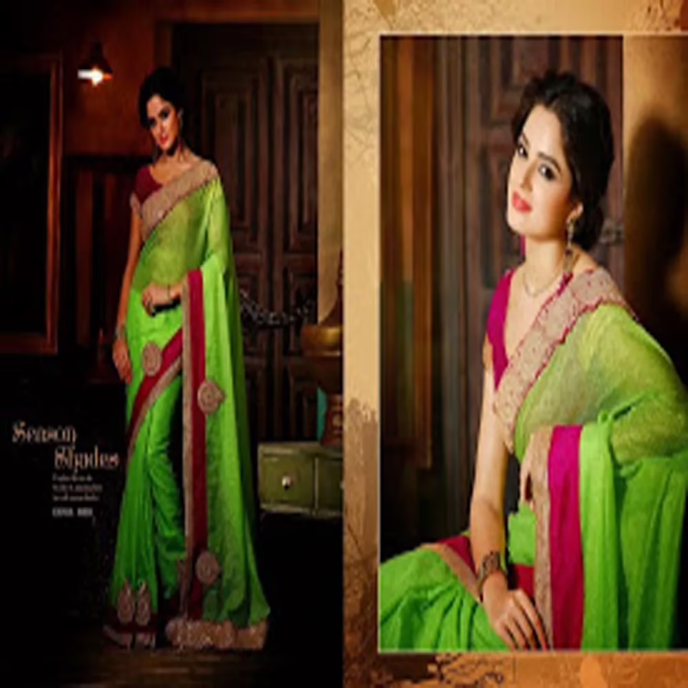 Green super net embroidered saree and taar kam cut work & patch work.Saree comes with a matching unstitch blouse piece of raw silk fabric which can be customised as per your requirement.