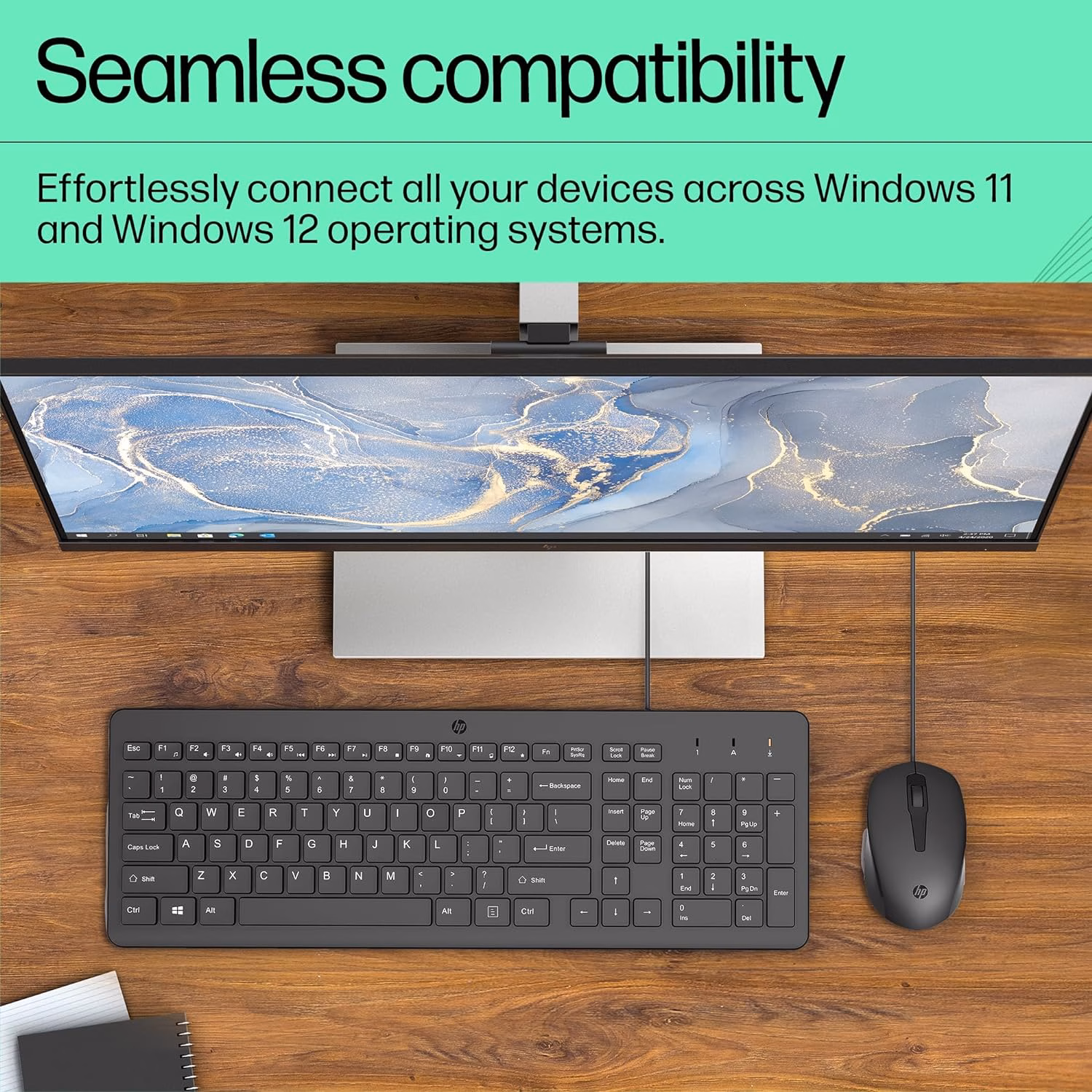 HP 150 Wired Mouse and Keyboard Wired USB Multi-device Keyboard?(Black)