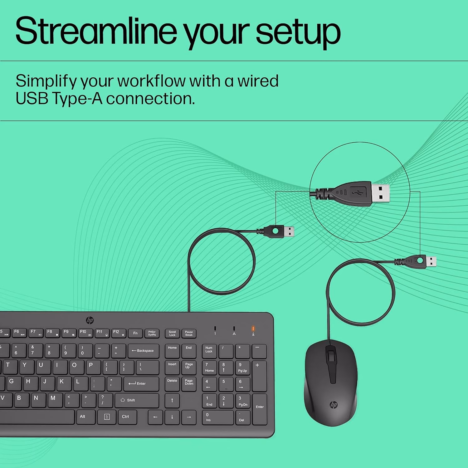 HP 150 Wired Mouse and Keyboard Wired USB Multi-device Keyboard  (Black).
