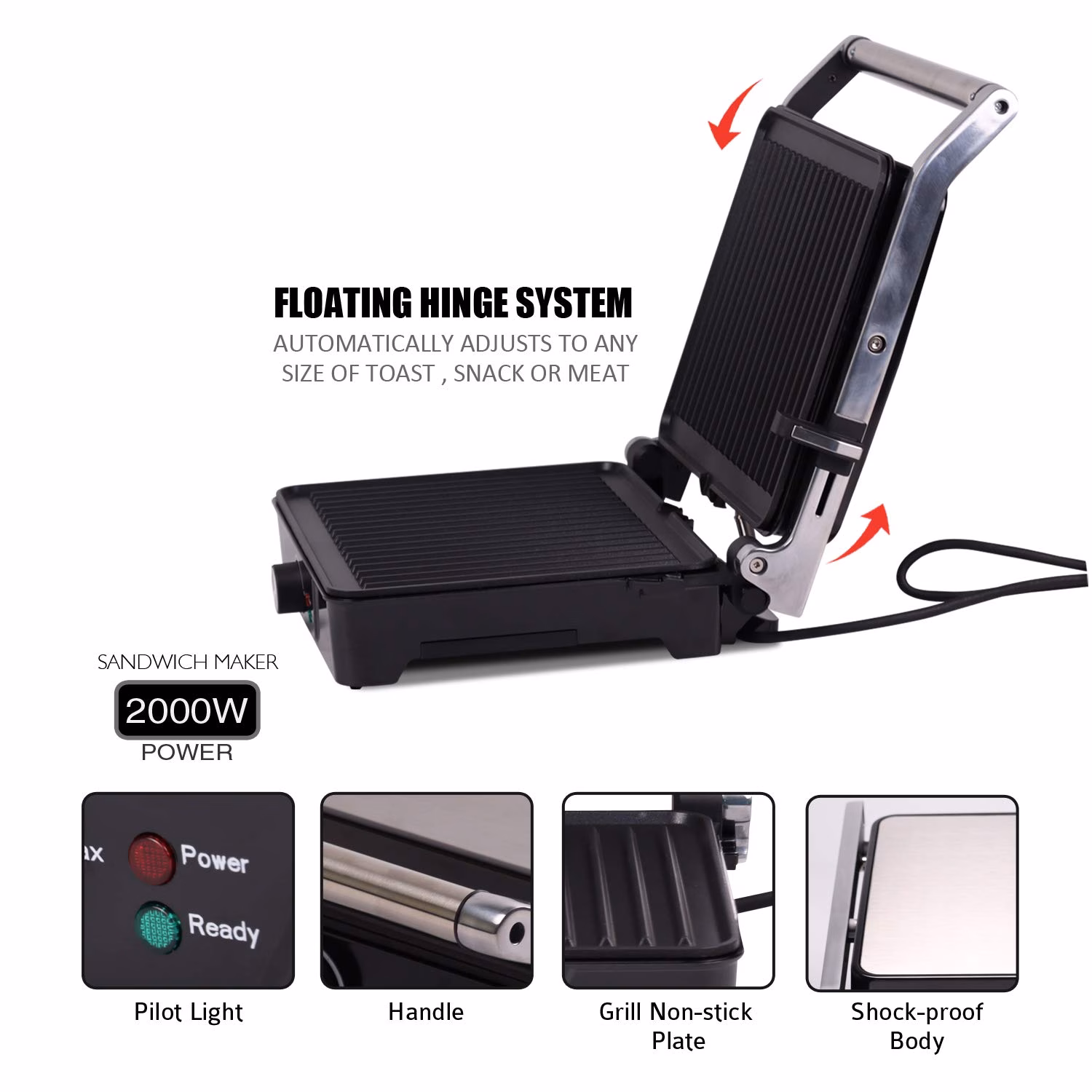 Model Name : ibellSM 201G Sandwich Maker, 2000W, Panini Grill, Big Size, Fit 4 Slice Bread
