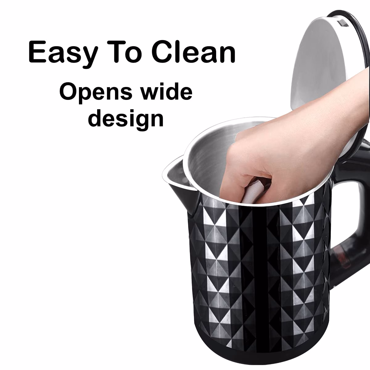 The Aqua comes with 800W of power that boils water in just 5-10 minutes. Prepare hot tea, delicious cocoa, or instant soup in no time. The pot, inner lid, filter, spout and rim of the Aqua Double Wall Kettle are all made of food grade 304 stainless steel. No plastic touches the water, the kettle makes the water free of contaminants, suitable for preparing baby food. Humanized design and 0.6L capacity is enough to make 2-3 cups of tea or coffee in very short time. This is the perfect kettle for a small gathering. Aqua features extra-ordinary safety measures such as boil dry protection and automatic shut-off to ensure your safety. The double wall system of the Inalsa electric kettle is made of quality BPA free PP material which protects users from scalding and keeps water hot for longer.