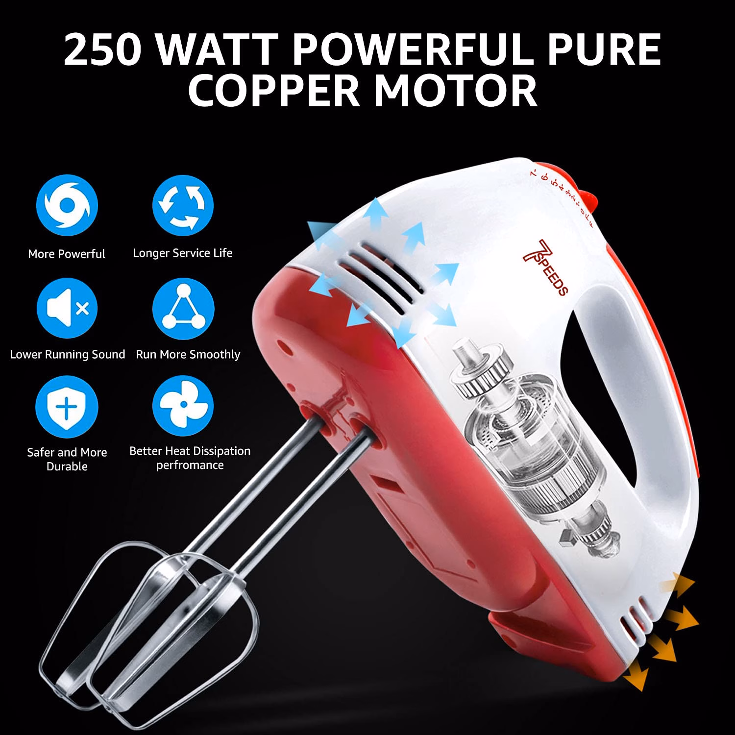 Easy Mix has a powerful motor that provides powerful processing & at the same time is energy saving. Save time & money with this appliance. It performs all your blending, whisking & kneading tasks fast & efficiently. Control the power you need: With 7-Speed control settings you get, control your food preparation. Mix ingredients for a variety of recipes, from slowly stirring in chunky ingredients like nuts or chocolate chips, at speed one to whipping egg whites or heavy cream, at speed seven. Attachments for all your cooking tasks:Beat, Mix, Whisk, Blend, Mash with Quality stainless-steel attachments.2 Detachable Beaters & Whisker/Dough Hooks that will take care of your meal preparation. Now making doughs& batters is quite an easy task. In-Built Eject Knob Feature helps you to remove attachments without a hitchIts compact design & slim-grip makes our hand mixer machine easy to hold and manoeuvre in mixing bowl or large cup. Input Supply 220 – 230V, AC.