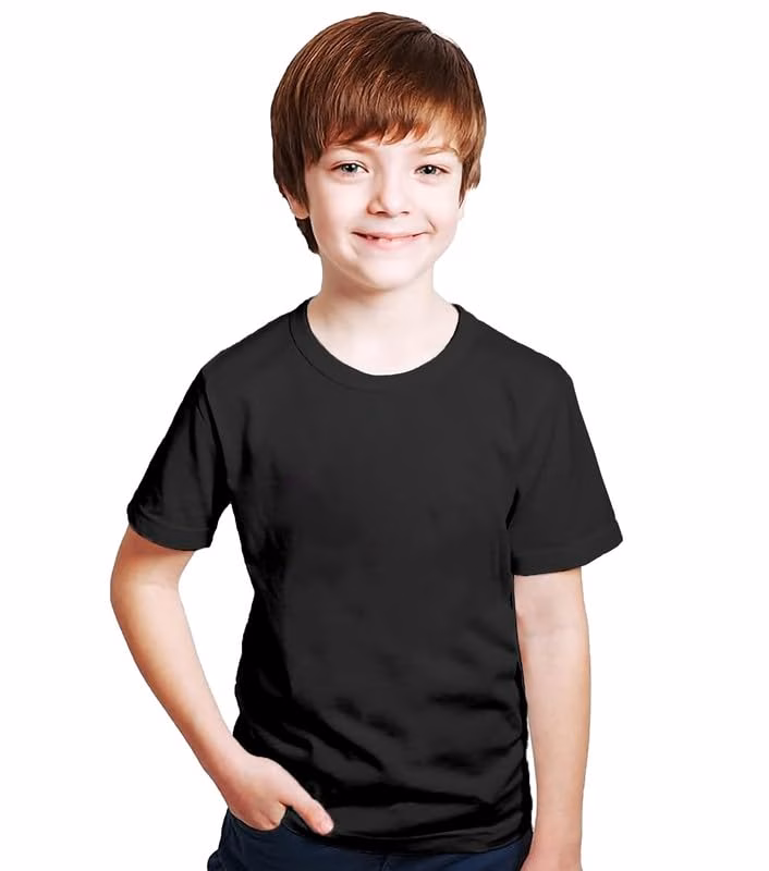 Kids Unisex Round Neck Cotton Black T-Shirt.
