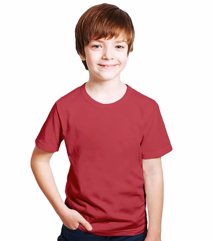 Kids Unisex Round Neck Cotton Maroon T-Shirt.