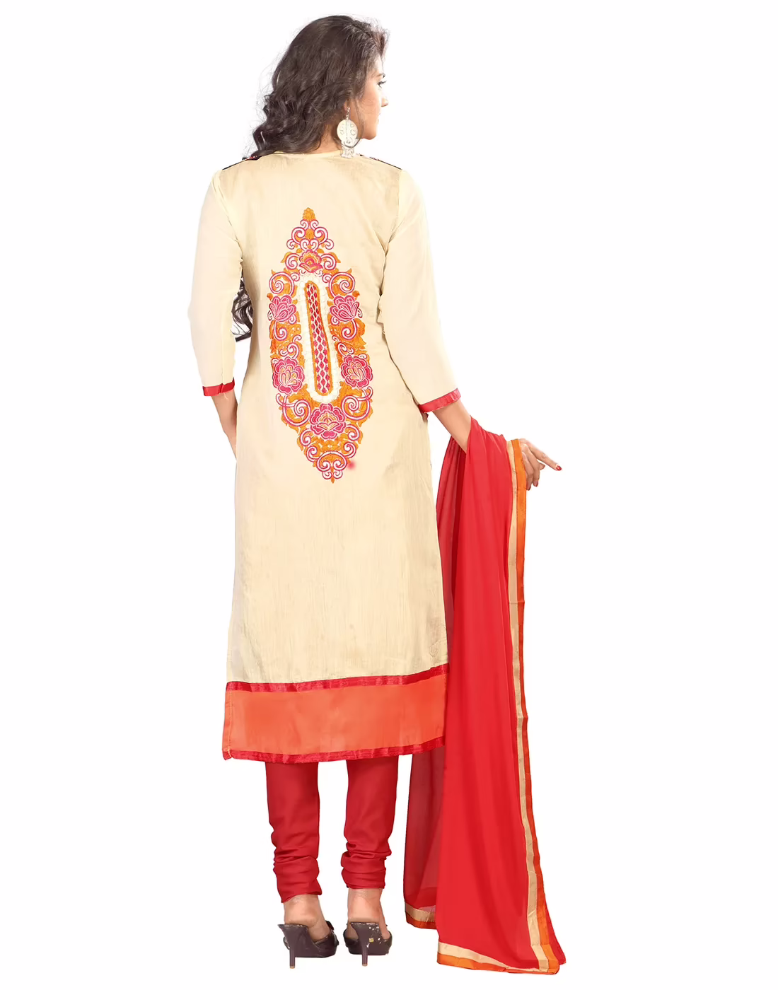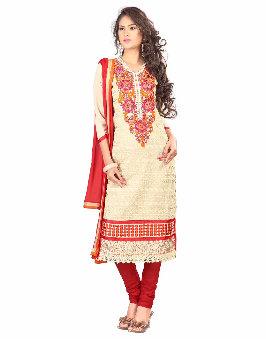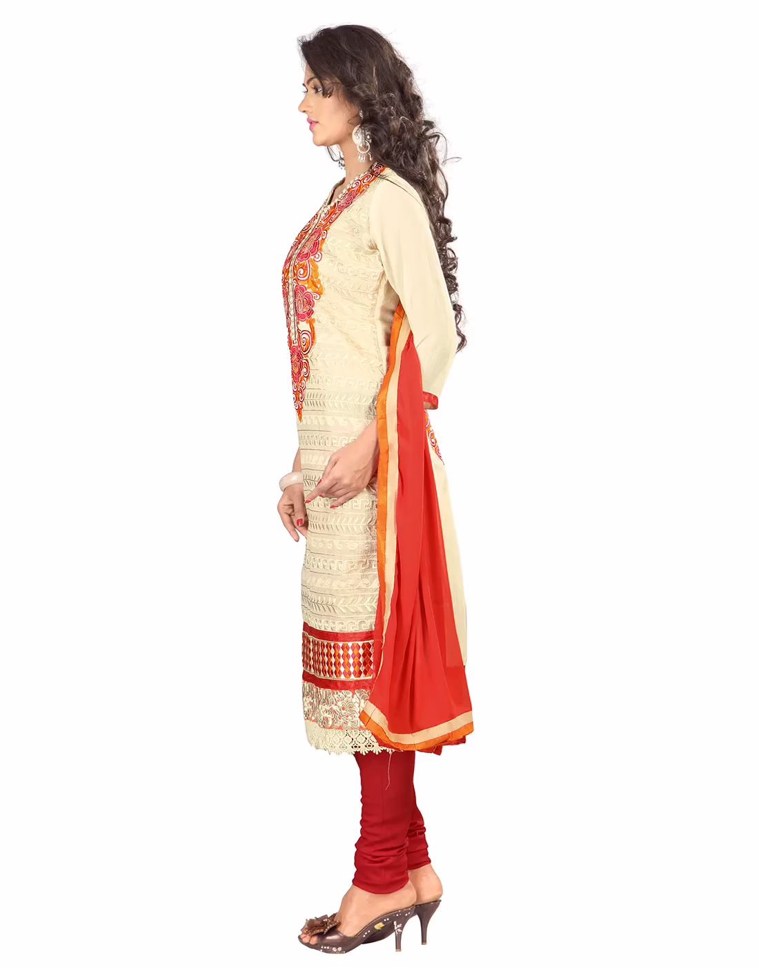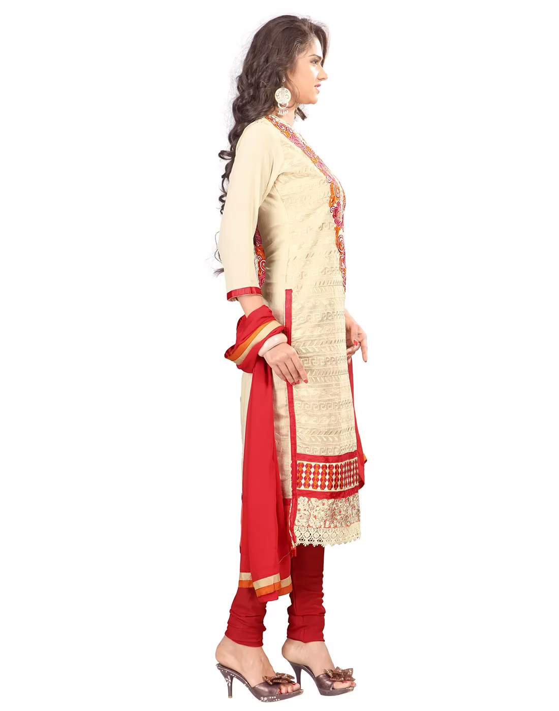 Colour = Top:- Beige, Bottom:- Red, Dupatta:- Red