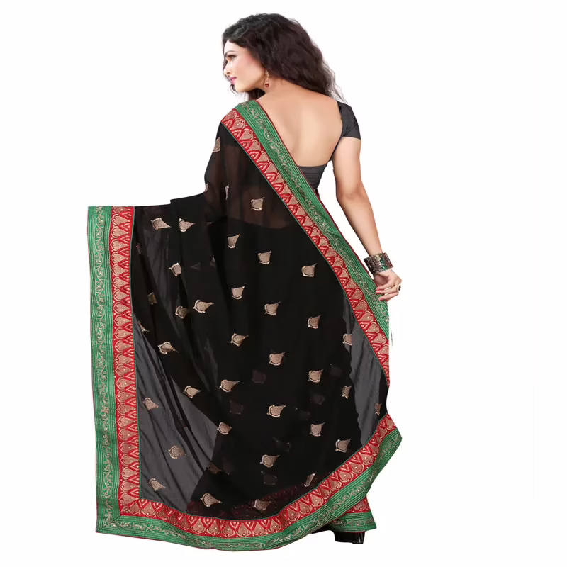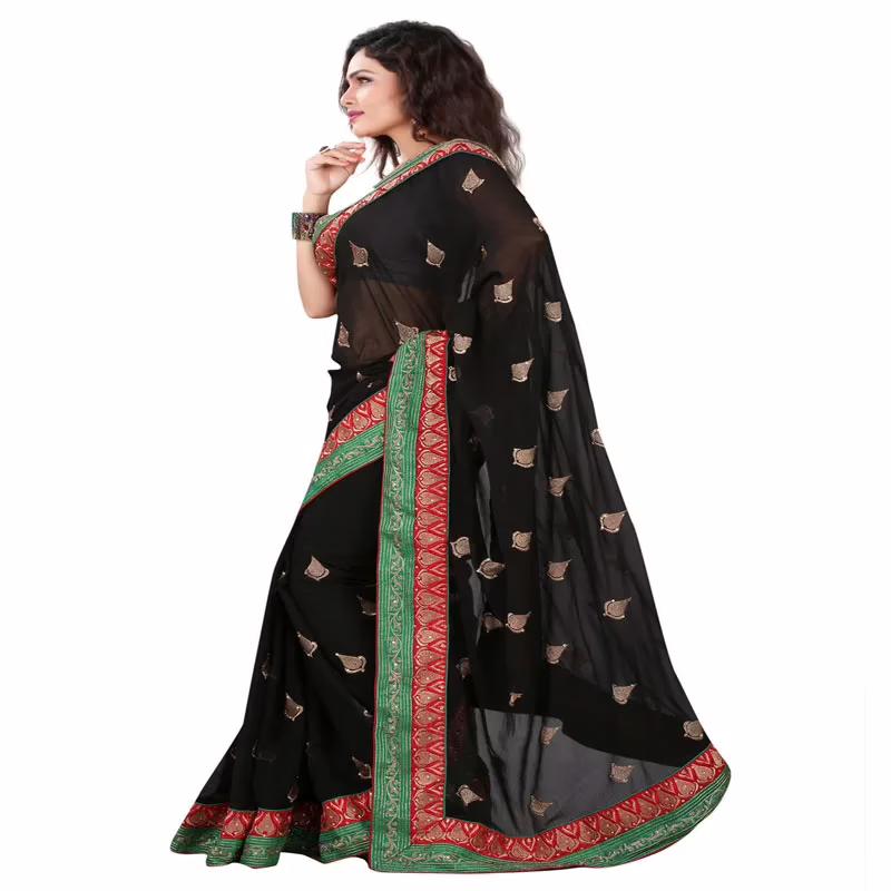 Lookslady Embroidered Black Chiffon Saree For Ladies,Girls,Women at Seasonsway.com .