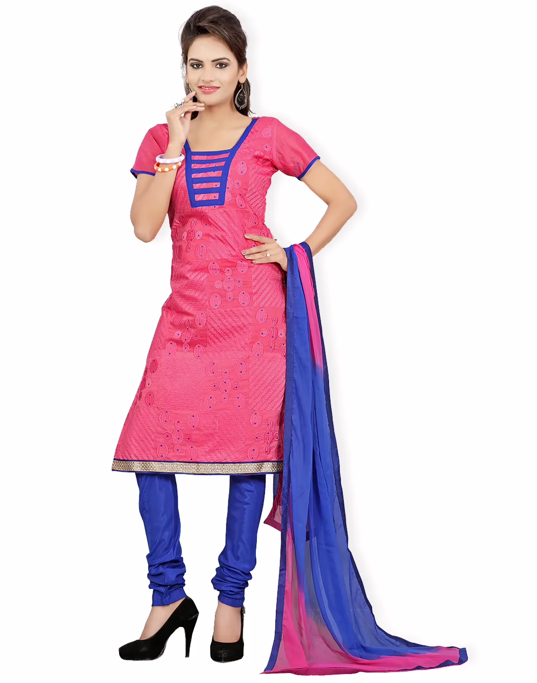 Color : Top:- Pink, Bottom:- Blue, Dupatta:- Purple