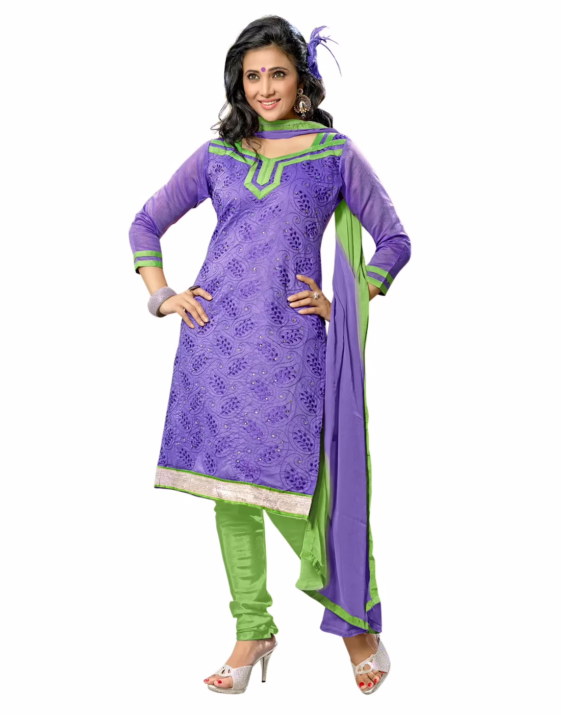 Color : Top:- Purple, Bottom:- Light Green, Dupatta:- Purple