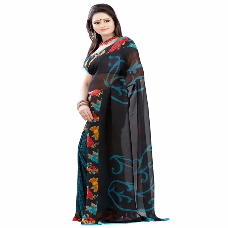 Lookslady Printed Black Faux Georgette saree For Ladies,Girls,Women at Seasonsway.com .