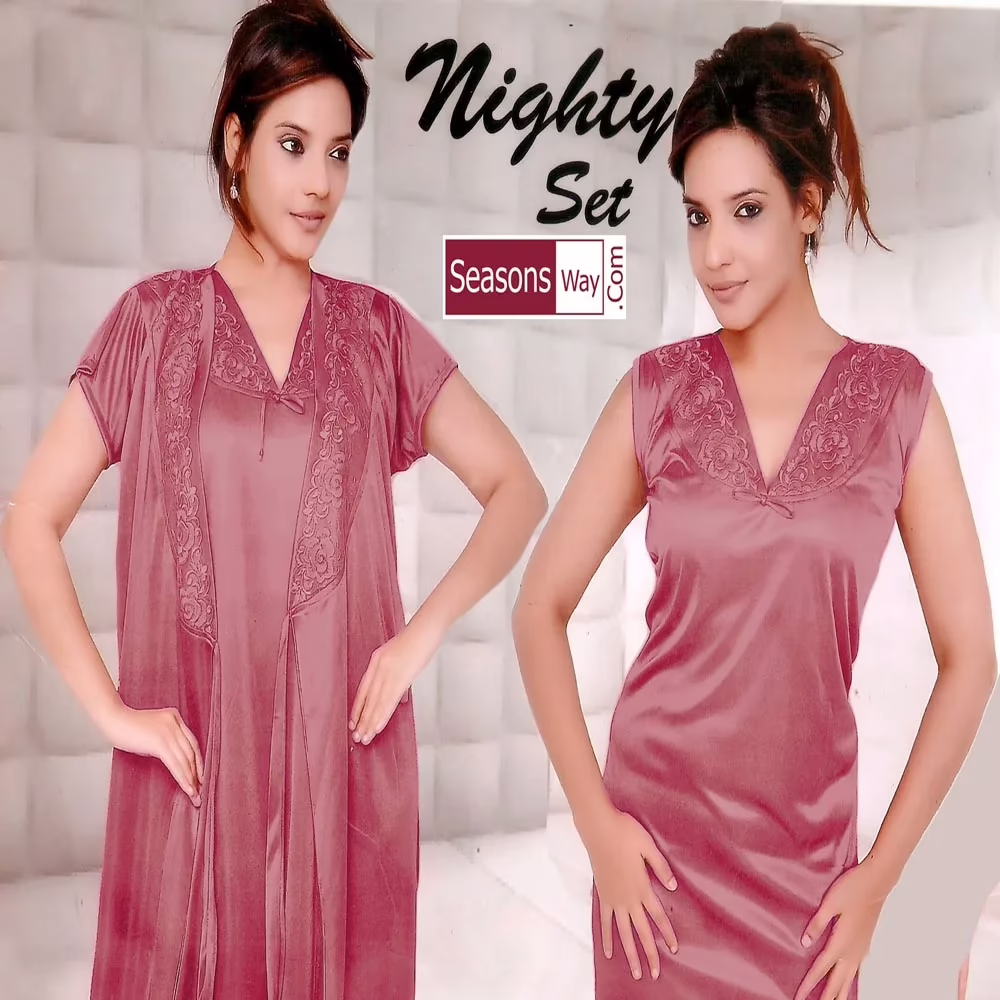Maroon Satin 2 Piece Bridal Nighty/Nightwear For Women ,Ladies Online on One Size for all Which will Provide you an adorable look and pleasure .
