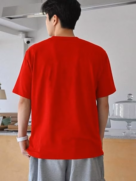 Men Round Neck Red T-Shirt.