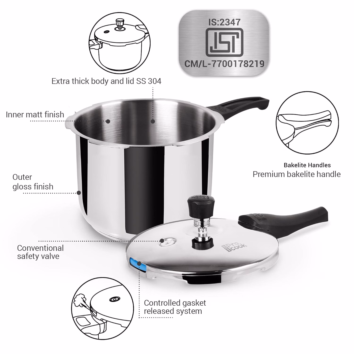 Model Name : Milton Pro Cook Sandwich Bottom Stainless Steel Pressure Cooker with Outer Lid