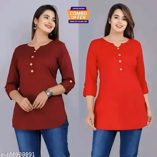 Pack 2 Stylish Women’s Crepe Printed Straight Top Tunic Kurti