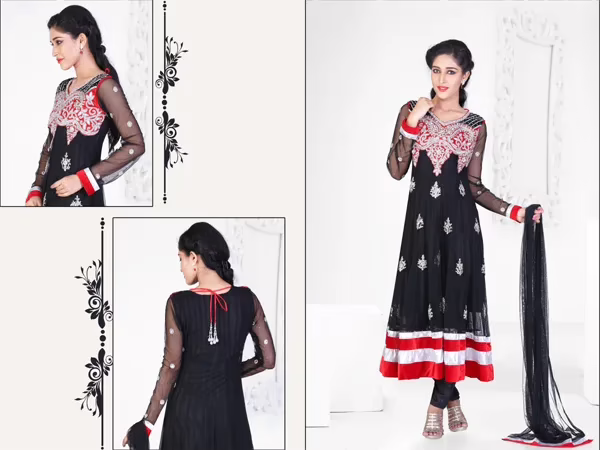 Pazaar Kaanchi Black 3 Embroidered Anarkali Salwar Kameez for All AgeGroup Ladies,Girls,Women at Seasonsway.com.A party or a small gathering you can always outshine in this lovely  salwar kameez .The most attractive part of the garment is the sleeves making it beautiful and exceptional .The net is an added bonus.Get Comfort,Easy and Perfect clothing,apparel,dresses this season for Stylish Working and Practical Women,ladies,girls at our online women shopping website,store.
