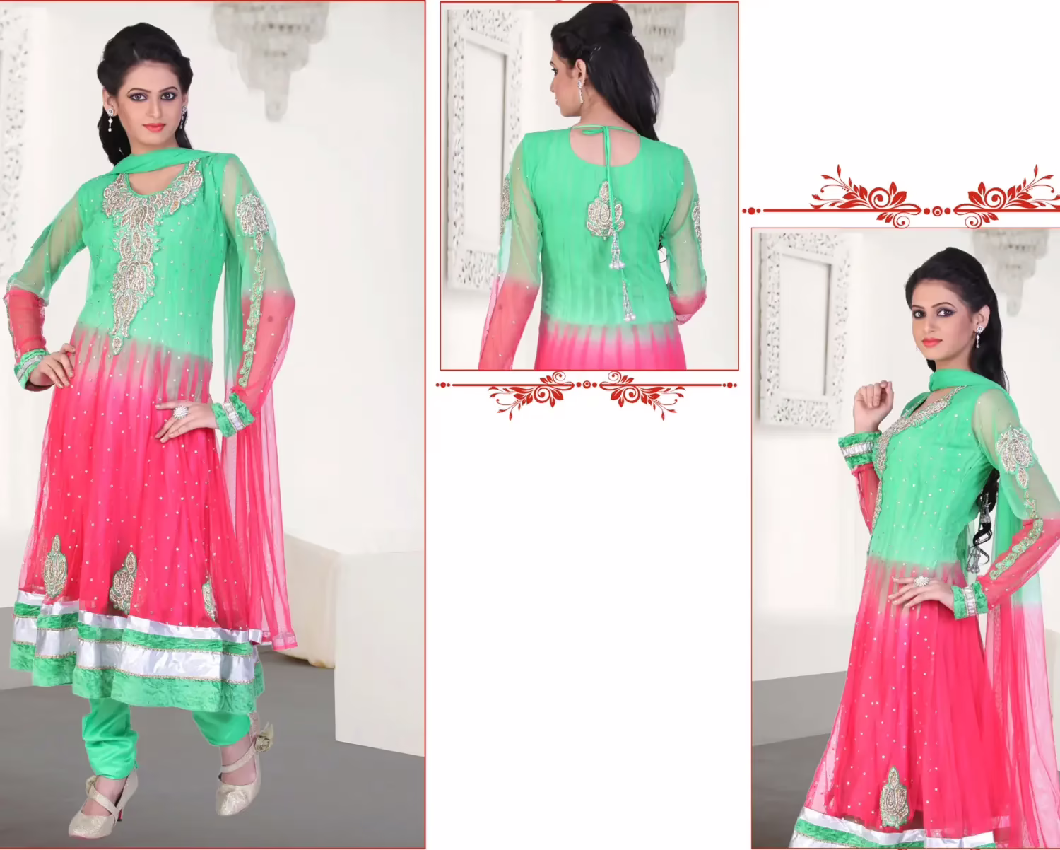 Pazaar Kaanchi Green and Amaranth PinkEmbroidered Anarkali Salwar Kameez for All AgeGroup Ladies,Girls,Women at Seasonsway.com.Get Comfort,Easy and Perfect clothing,apparel,dresses this season for Stylish Working and Practical Women,ladies,girls at our online women shopping website,store.