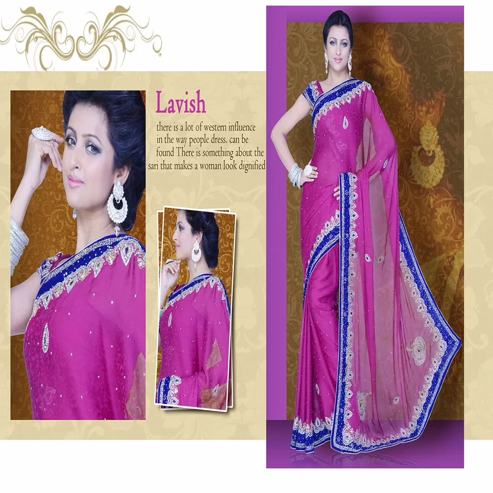 Saree Features: Byzantium Purple embroidered party saree intricate with zari thread, resham thread, sequins work, beads work, self jacquard work, floral work, leaf work and patch patti border work.Saree comes with a Byzantium Purple unstitch blouse piece of Viscose Georgette and Jacquard fabric.