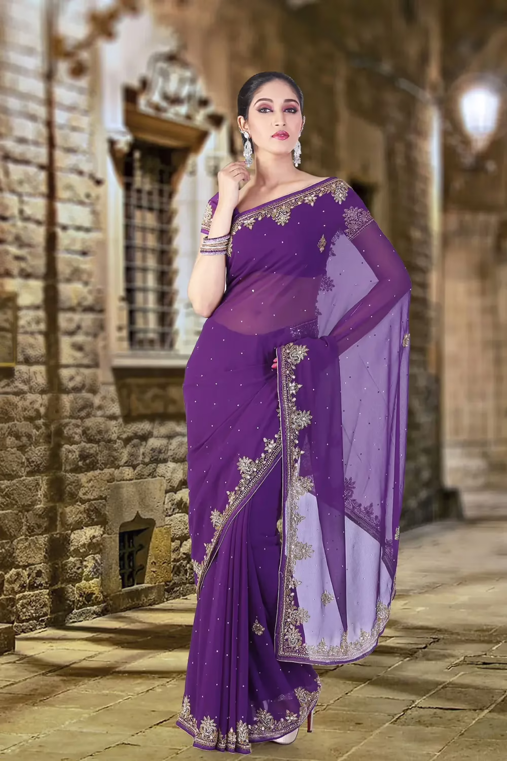 Pazaar Persian-indigo Violet Embroidered Party Saree With Zari Thread for All Age Group Ladies,Girls,Women at Seasonsway.com .This fabric keeps you fresh and comfortable all day This fabric keeps you fresh and comfortable all day. The one who are desperate about their outfit style trend can prefer this awesome collection “Party wear Chiffon Georgette fabric saree” with an unstitched blouse. This attire gives you satisfaction as it adjoins the exclusive structure to your outfit.Comfort,Easy and Perfect clothing,apparel,dresses this season for Stylish Working and Practical Women,ladies,girls at our online women shopping website,store.