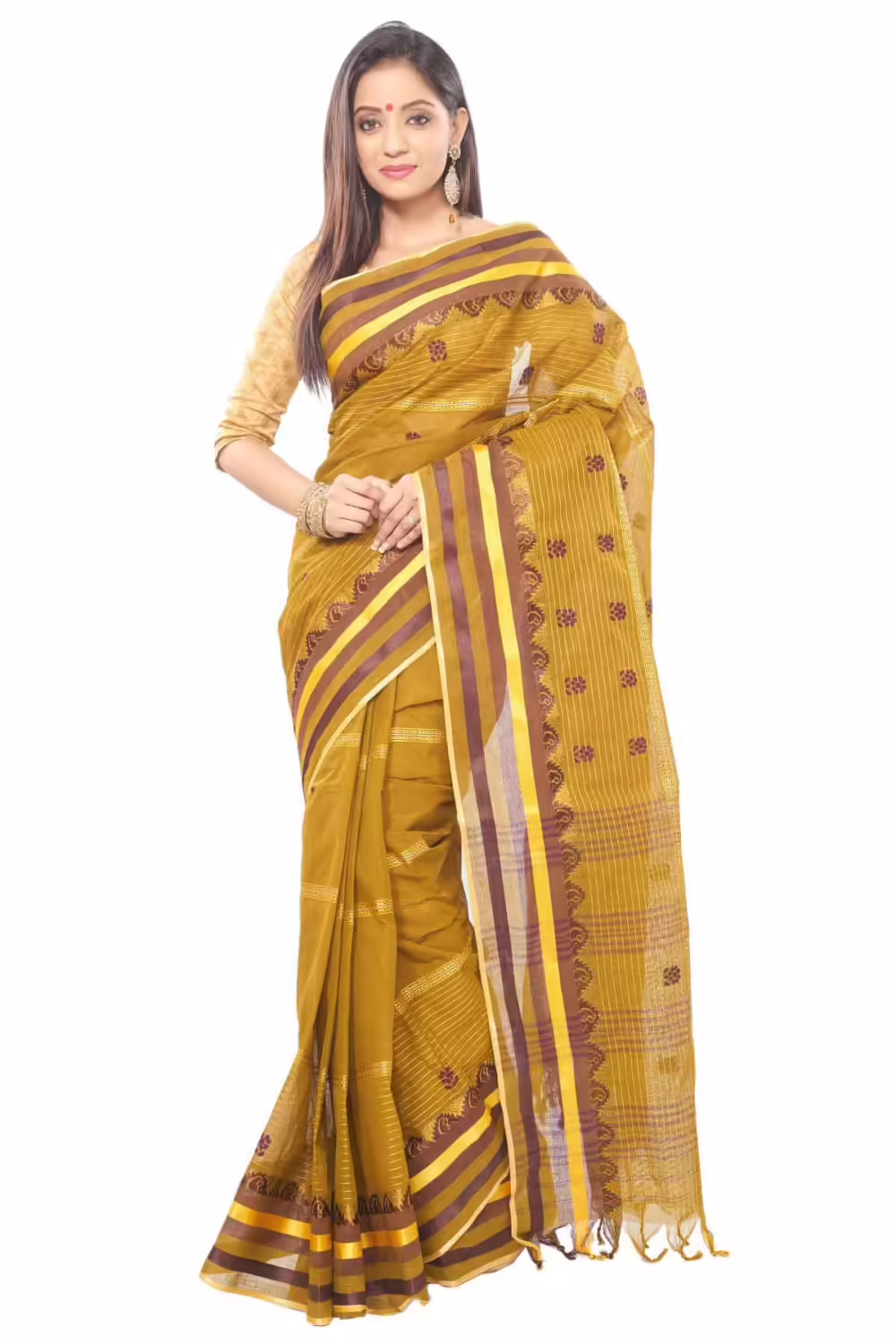 Bengal Tant cotton saree with unstitched blouse piece WITH Handloom mark for All AgeGroup Ladies,Girls,Women at Seasonsway.com.