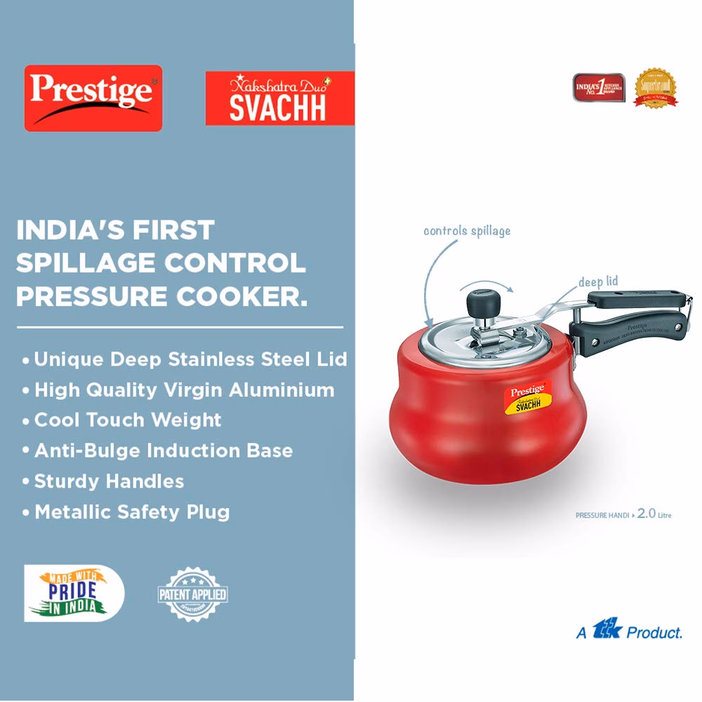 Prestige Svachh Nakshatra Duo Plus 2 L Induction Bottom Pressure Cooker?(Aluminium).