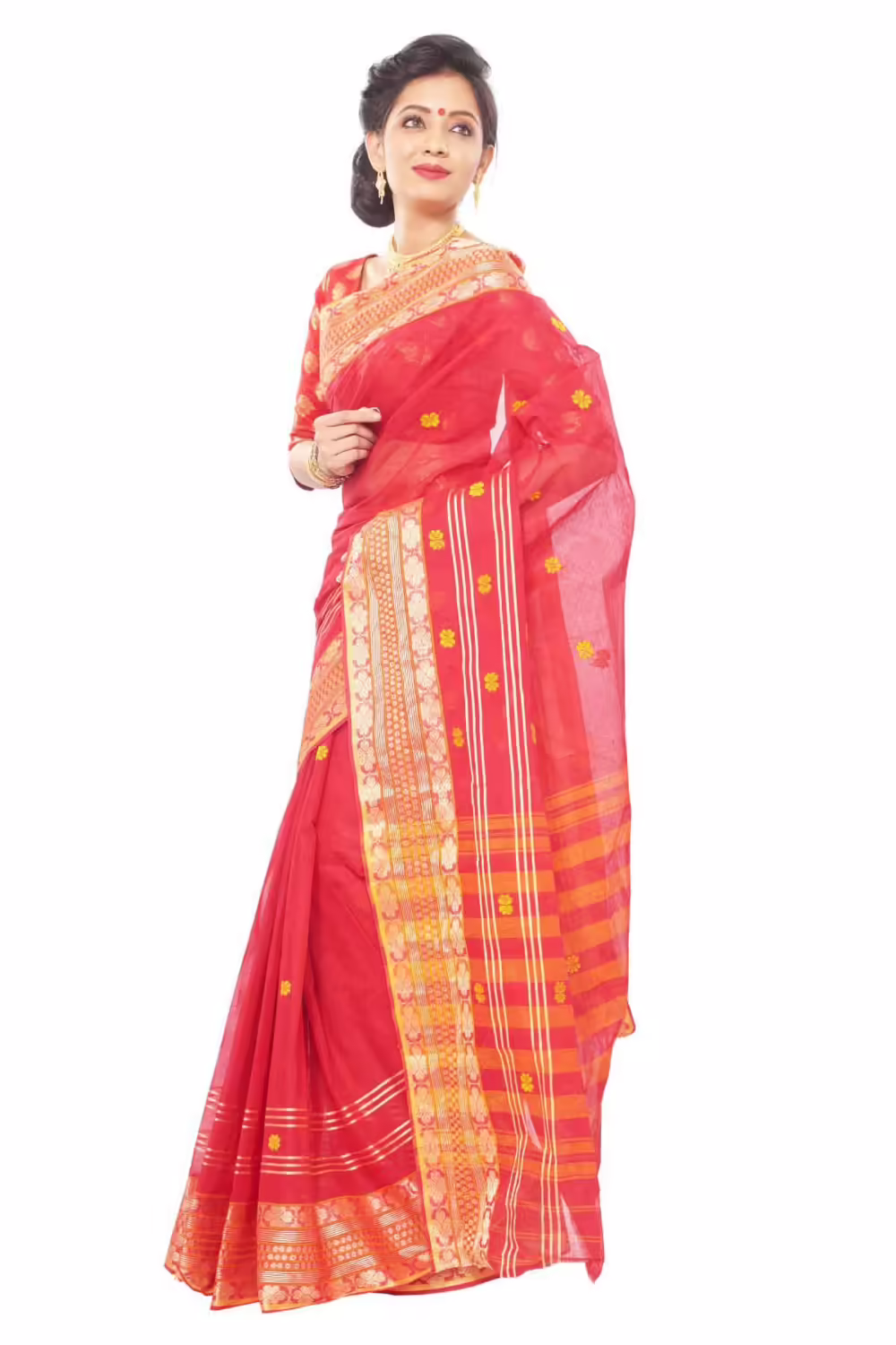 Bengal Tant cotton saree with unstitched blouse piece WITH Handloom mark for All AgeGroup Ladies,Girls,Women at Seasonsway.com.