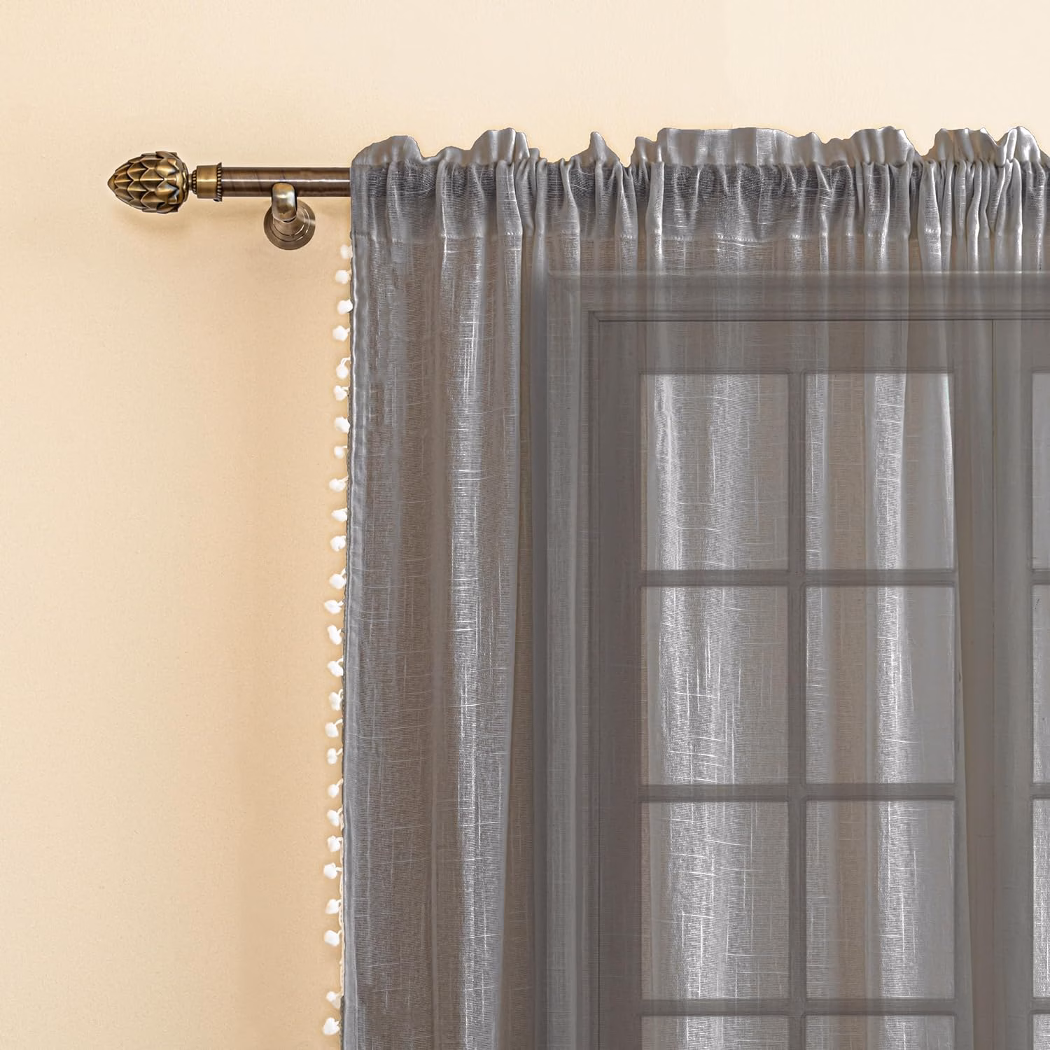 Seasons Cotton Sheer Curtains 8 Feet Long Door, Grey