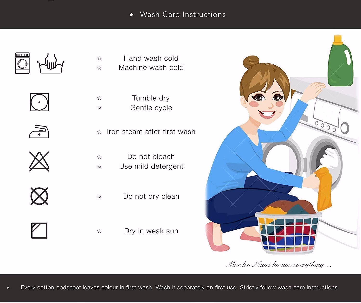 Enjoy the sumptuous comfort of these sheets with a high thread count of 300, providing a soft and smooth feel against your skin. Gentle Hand/Machine Wash in Coldwater, Use Mild detergent, Don?t Bleach, Wash Separately. Color may vary slightly from Photographic Images. The bedsheet has a beautiful luxurious sheen and silky-smooth feel due to the mercerization process on the fibers. The 100% Premium fabric is lightweight, soft, and comfortable.Material: Cotton, Thread Count is 300. Size of Bedsheet is 90 inch x 98 inch or 228 cm x 248 cm, Pillow Cover – 18 inch x 27 inch or 46 cm x 68 cm.