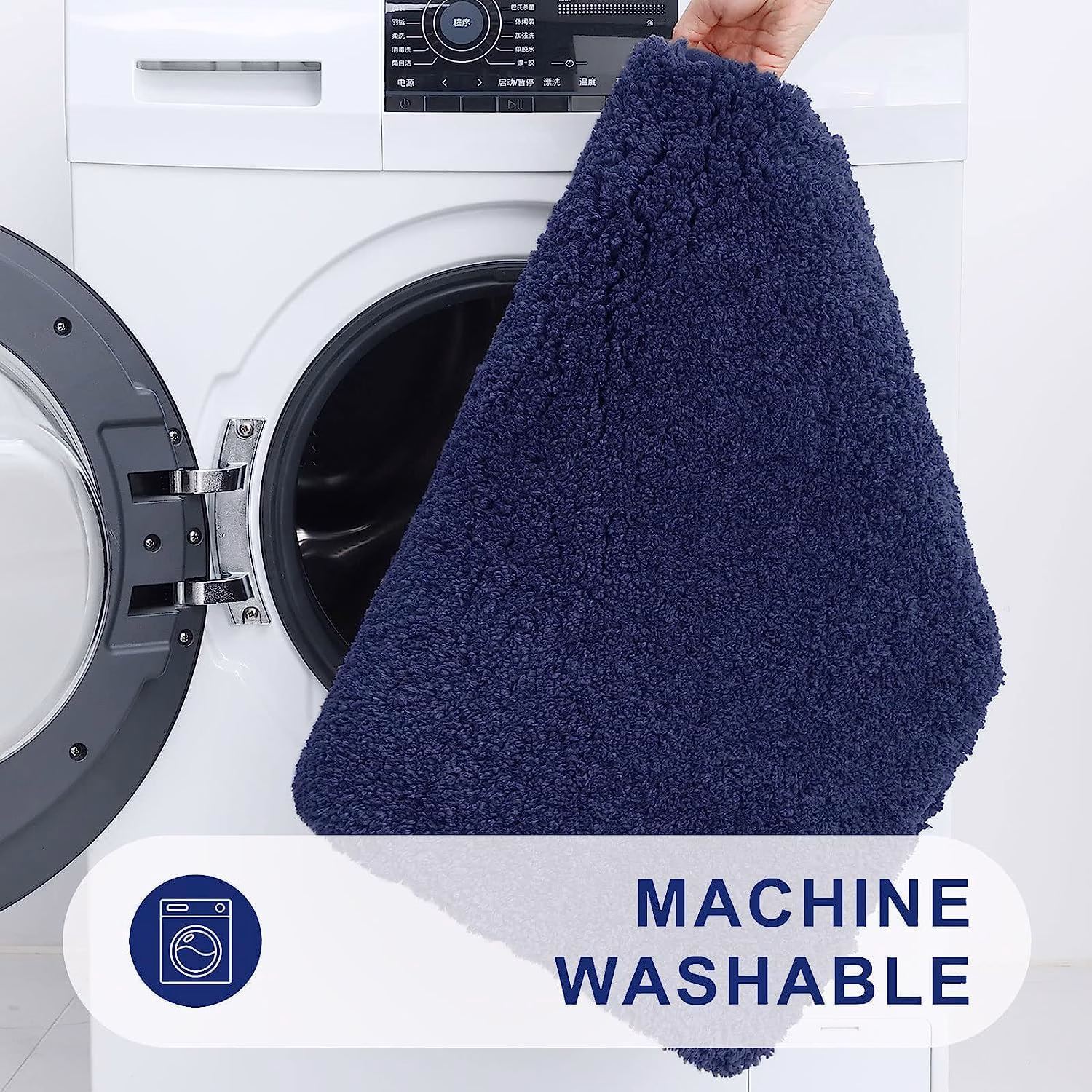 Seasons Microfiber Anti-Slip Bathmat Set, Navy Blue.