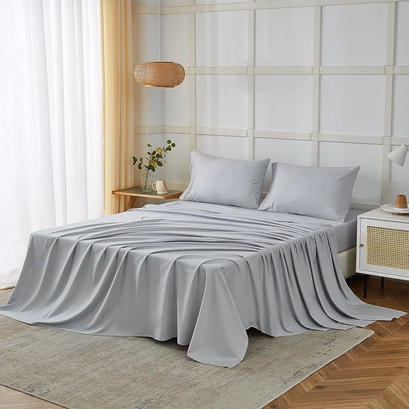 Seasons Microfiber Bedsheet for Double 2 Pillow Covers, Light Grey.