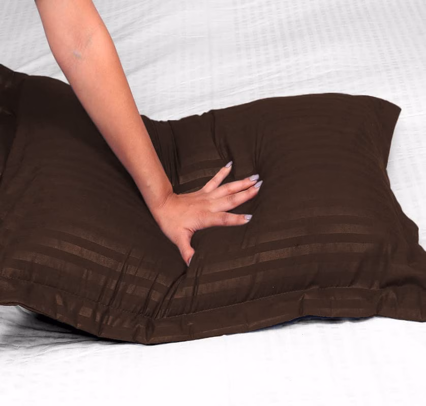 Seasons Premium 210 TC 100% Pure Cotton Satin Stripes Pillow Cover Set of 2 Pcs, for Hotel Hospital Uses, 18×28 inches – Coffee