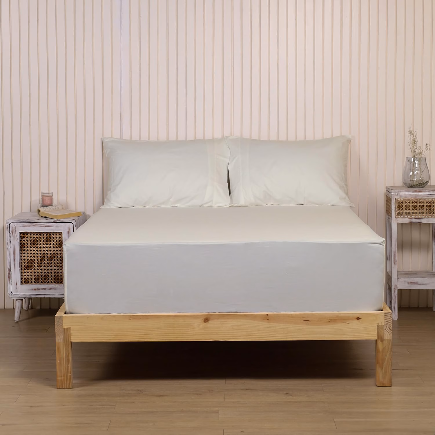 Seasons Pure Cotton Percale Fitted Sheet for Double Bed Size Bedding with Pillow Cover for Bedroom, Soft Hotel Quality Bottom Bedsheets with Elastic Deep Pocket (72×72 Inch, Ivory).