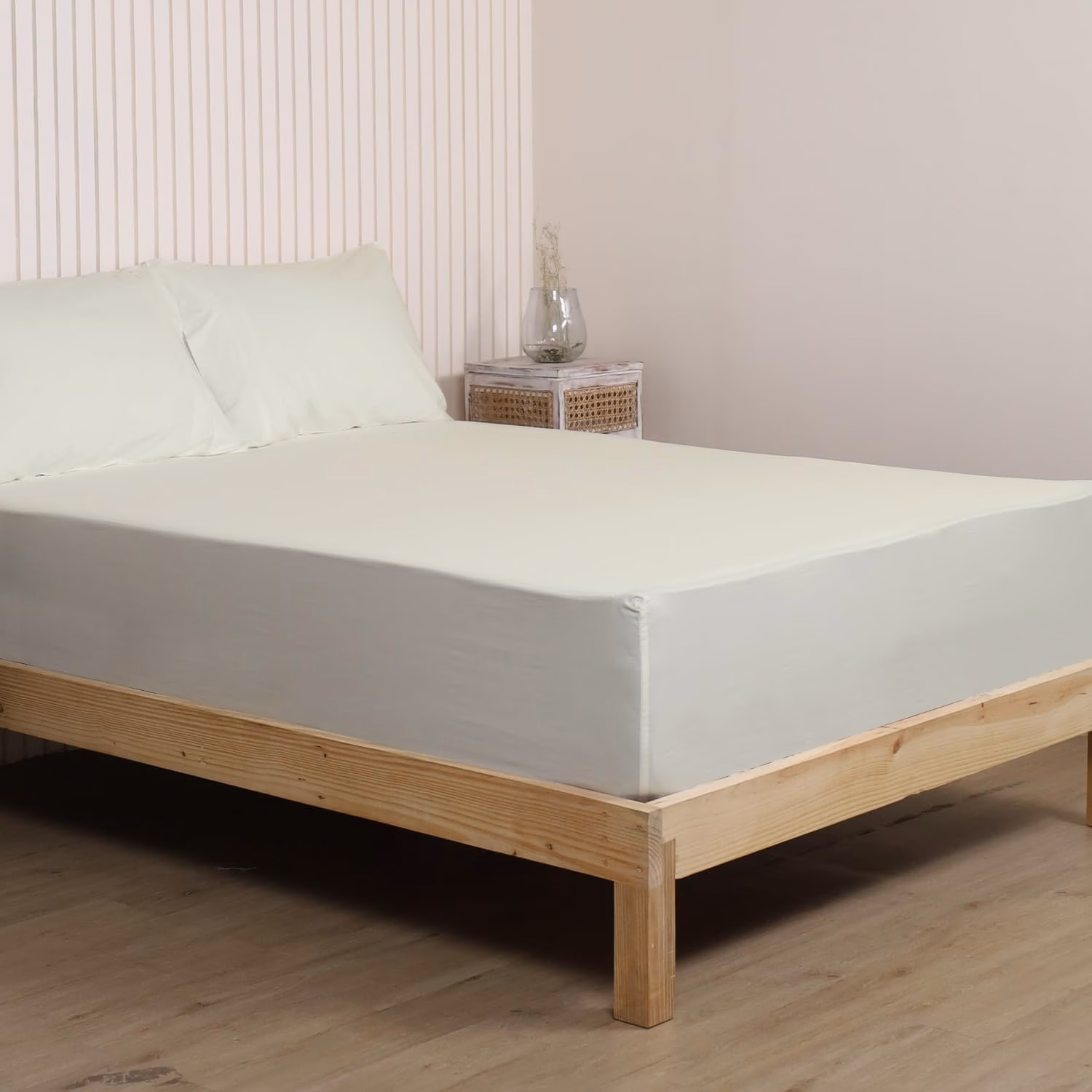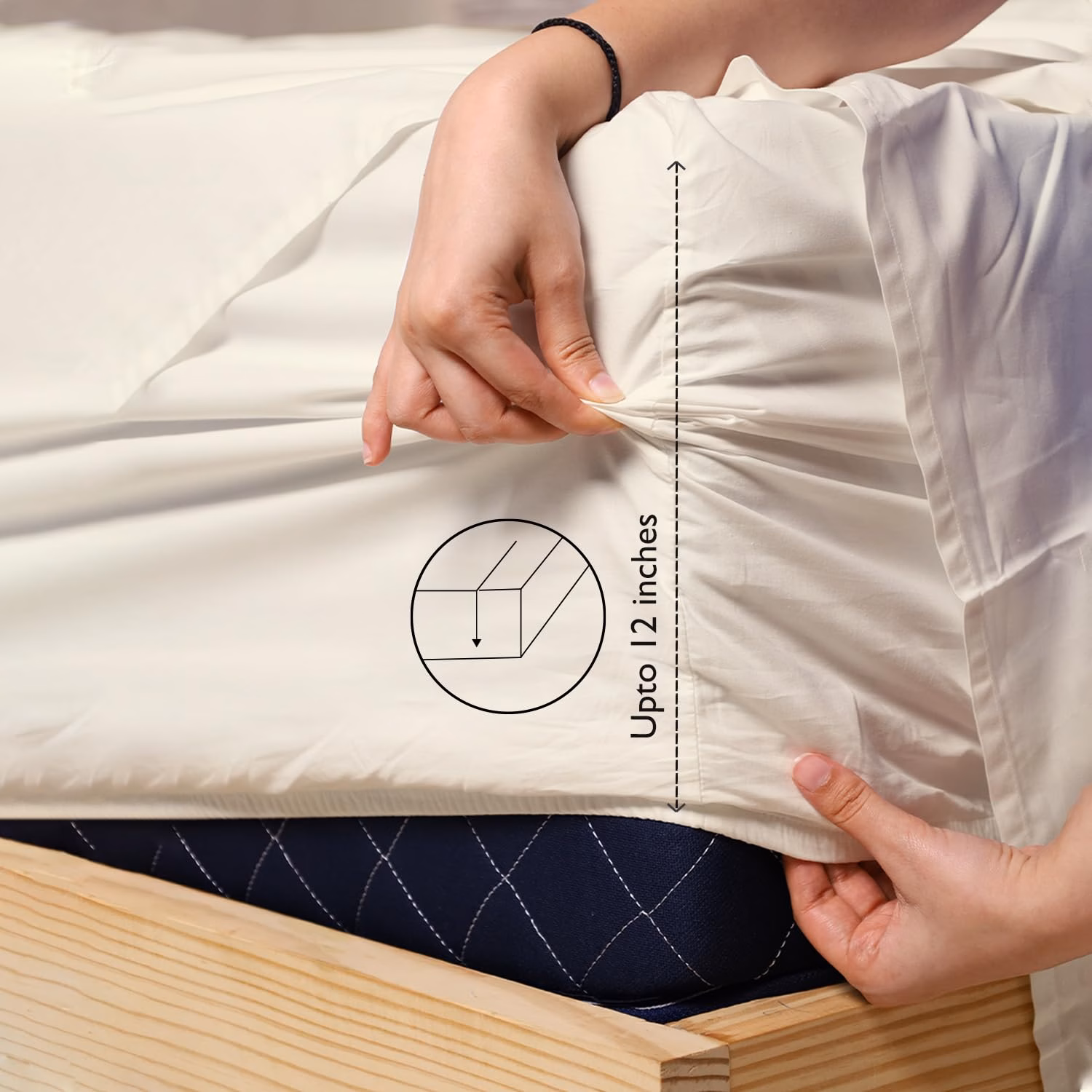 Seasons Pure Cotton Percale Fitted Sheet for Super King Bed Size Bedding with Pillow Cover for Bedroom, Soft Hotel Quality Bottom Bedsheets with Elastic Deep Pocket (78×78 Inch, Ivory).