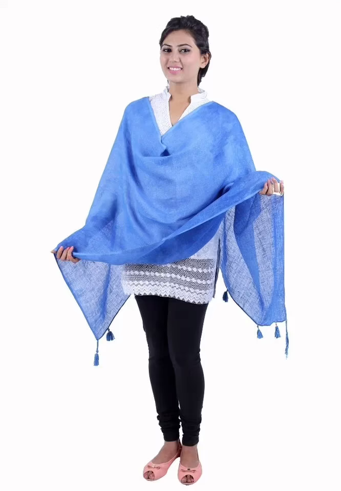 Sky Blue Solid Linen Stole with Tassel’s for women or All Age Group Ladies,Girls & Women from Seasonsway.com ,offering Comfort,Easy and Perfect Scarf-Stole.