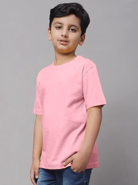 Unisex Boys & Girls Plain Pink T-Shirt.