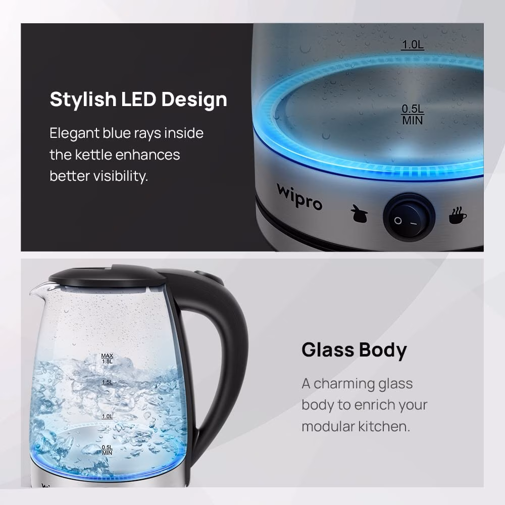 Wipro Vesta Glass LED electric Kettle with Keep warm Function Beverage Maker??(1.8 L, Glass).
