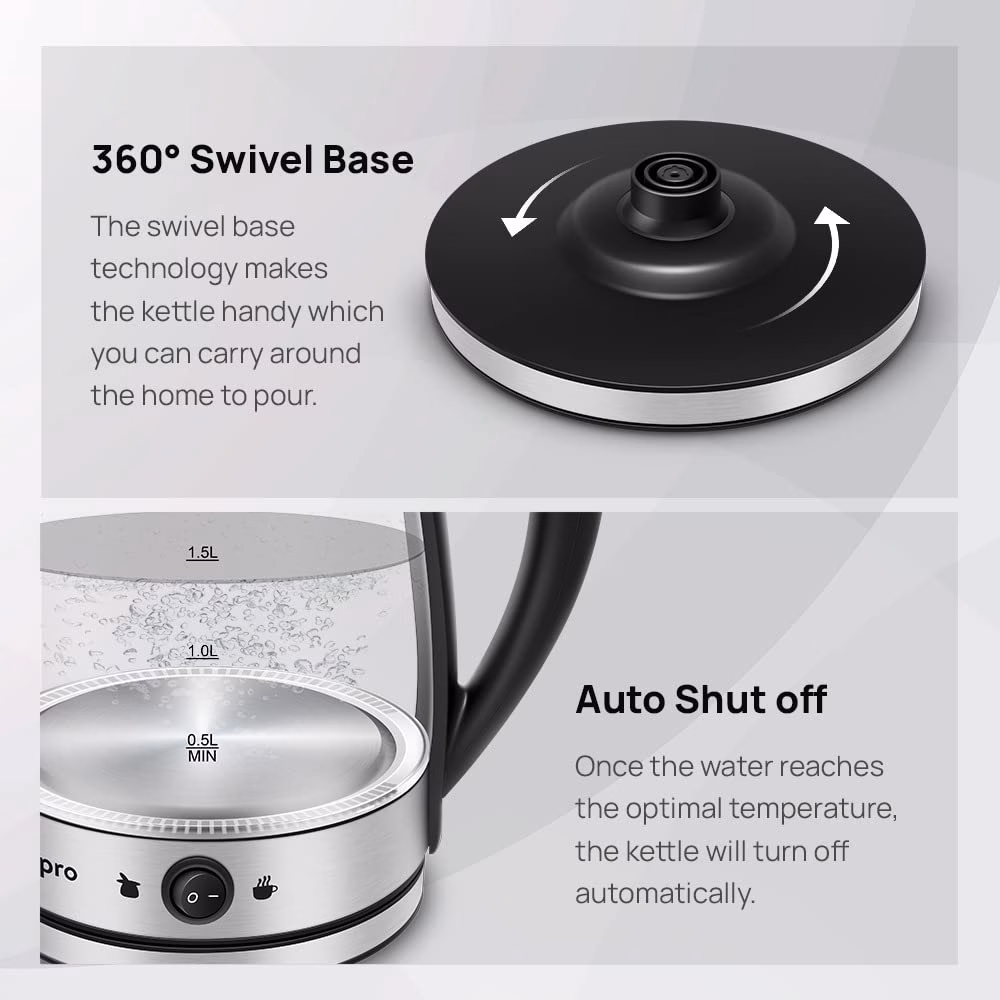 Featuring the Keep Warm function, the Wipro VE012180 1.8 L Electric Kettle lets you enjoy your favourite hot beverages with family and friends. This way, this electric kettle allows you to maintain the temperature of your hot beverage for an extended period, providing you with the convenience of enjoying a warm drink at your leisure. Offering triple-layer protection, this electric kettle ensures fast heating, dry boil protection, and overheat protection. Integrated with 360-degree swivel base technology, this electric kettle facilitates easy removal from the base and effortless pouring with enhanced portability. Thanks to its steam sensor, this electric kettle automatically turns off when the water inside reaches the optimal temperature. You can enjoy a fresh and hot cup of your favourite beverage anytime you want with the Wipro VE013180 1.8 L Electric Kettle.