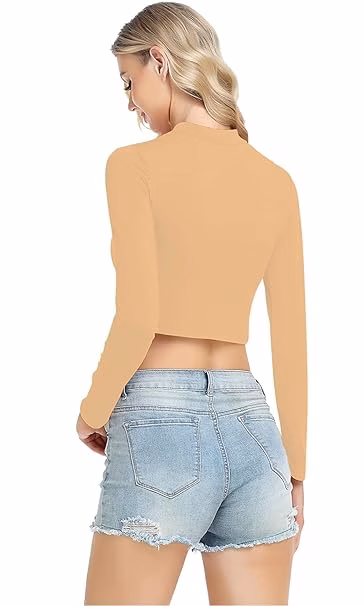 Soft stretch fabric fits like a second skin, Slim fit full sleeve turtle neck tops for women. Perfect suite for all occasions. This casual yet high neck crop top would look perfect paired with a denim mini skirt, round sunglasses, and ankle booties. Machine-washable on cold setting and safe to tumble dry on low heat with like colors, or, lay flat to dry.